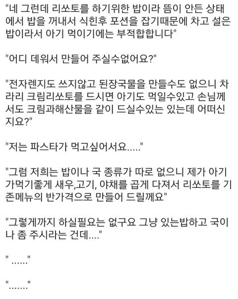 식당에서 맘충의 당당한 요구