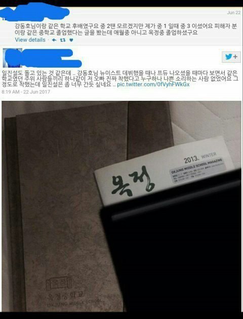 인증과 함께 일진설을 해명하는 글들이 올라왔습니다.