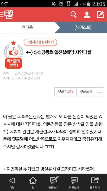 이글말야 판안하는사람들은 모를텐데 페북에 인사이트랑 위키트리처럼 유사언론에 제보하는게 어때? 저런곳에서 기사쓰면 사람들 댓글도 굉장히 많이 달리고 보눈사람도 많고.. 문제되면 글삭할게!