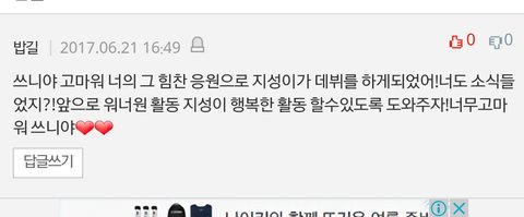 고마워 앞으로도 너처럼 항상 지성이를 응원할게