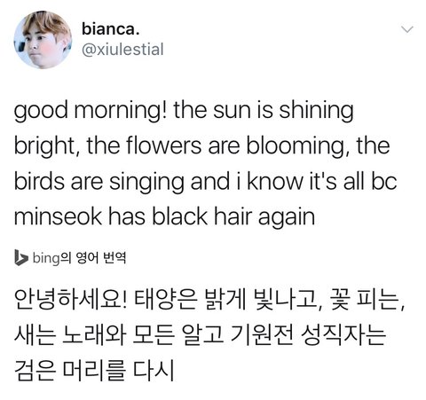 시우민 흑발에 감격한 외국팬분 트윗ㅋㅋㅋ