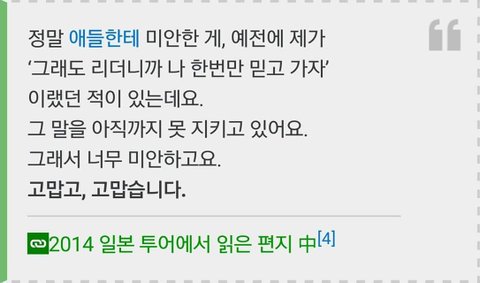 얘네 데뷔동기 중에 비투비, 엑소 등 크게 뜬 애들 말고는 지금 다 해체하거나 해체수순들어감. 걔네도 청소년때부터 몇년을 동고동락했을건데 뉴이스트만 유독 서로 깊은 유대감을 가지고 있다는건 진짜 신기한 일인것 같음. 심지어 애들이 다 다른지역에서 왔잖아 .리더가 6년간 팀 지키려고 아등바등한게 보여서 더 맘 아픔