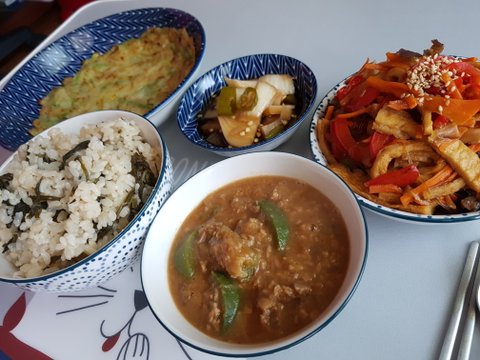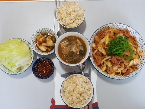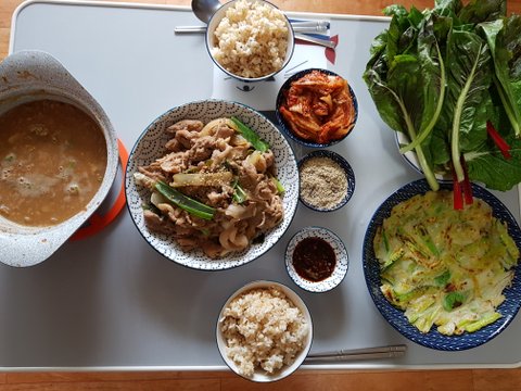 간장 제육볶음과 청국장찌개 그리고 호박전