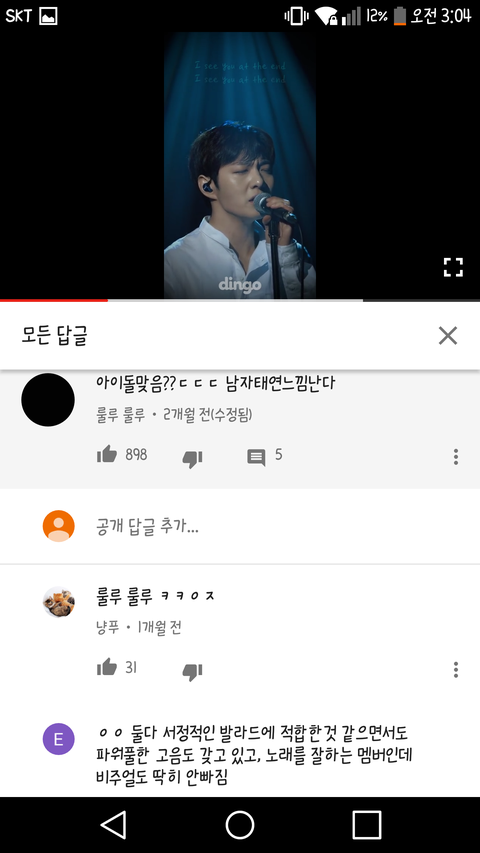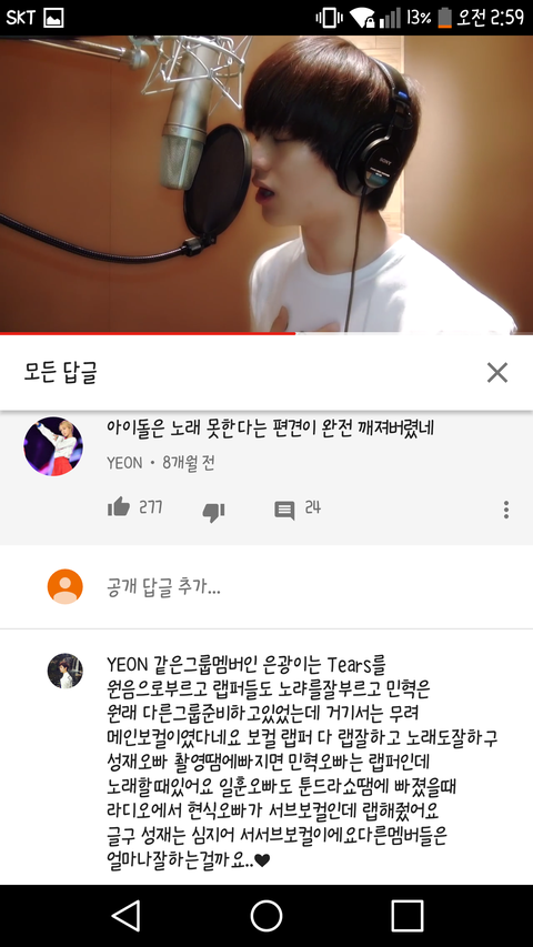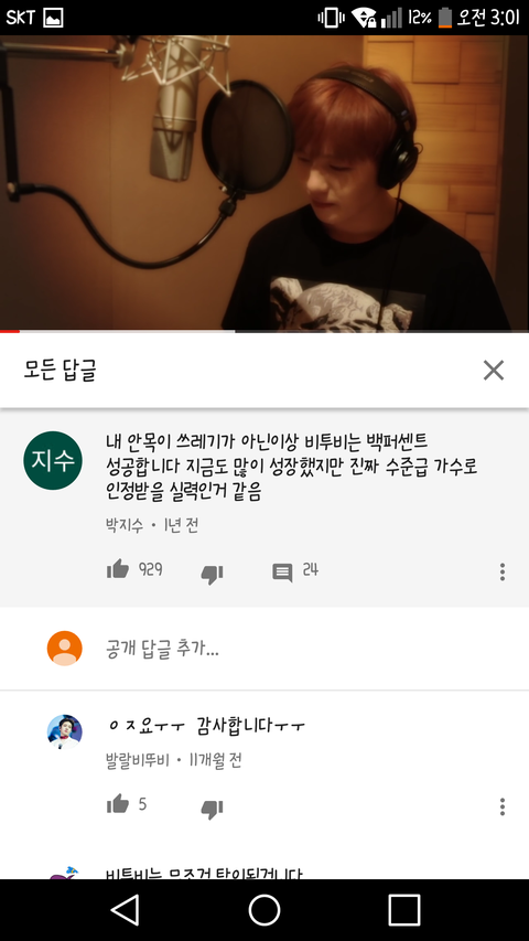 머글 베플의 가창자만을 향한 칭찬에 대한 반응임.