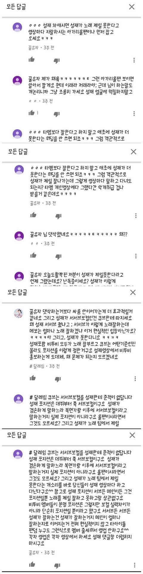 3. 그 글은 대부분 육성재가 제일 못한다는 거