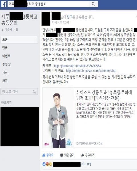 나 강동호 성추행 피해자의 지인이라는 사람이 페북에 있는 고등학교 동문회에 글올렸다는 거 봤는데 모자이크 없이 전부 보고싶어서... 성추행 피해자라는 쓰니가 나온 고등학교가 어디야??