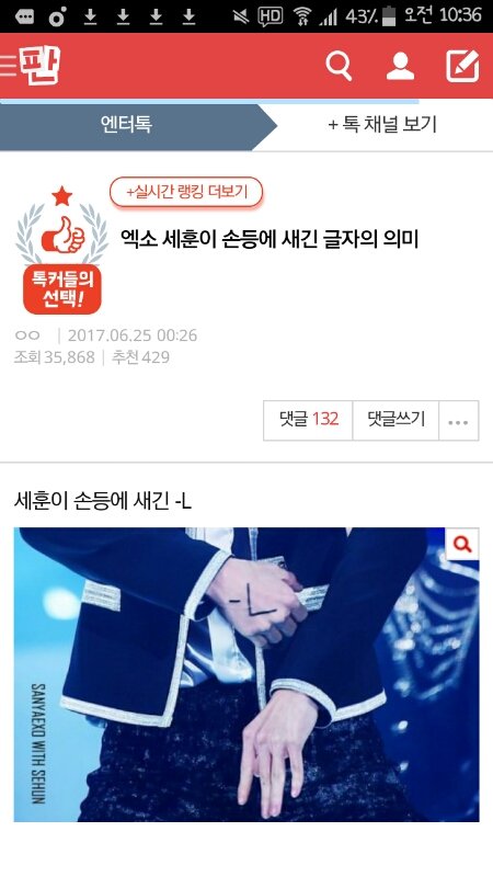 손등에 적고 무대한줄몰랐음ㅅㅂ 세훈이 스릉해