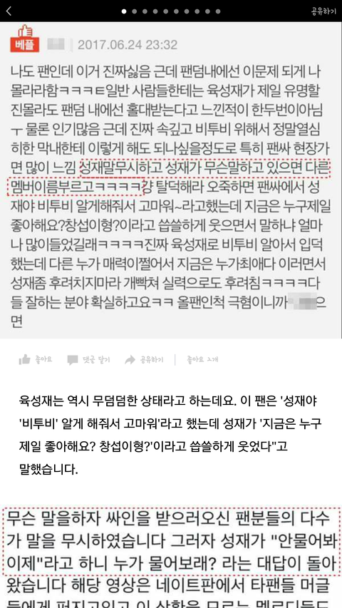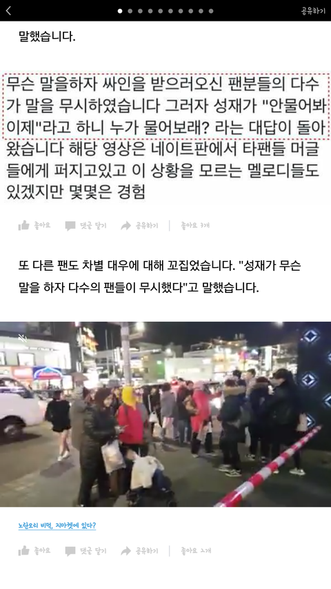 기사 제목도 자극적이고 내용만 보면 우리 팬덤 전체가 다같이 저러는줄 알겠다 기사 많아지면 성재도 볼꺼같은데 진짜 이게 무슨일이니 ...