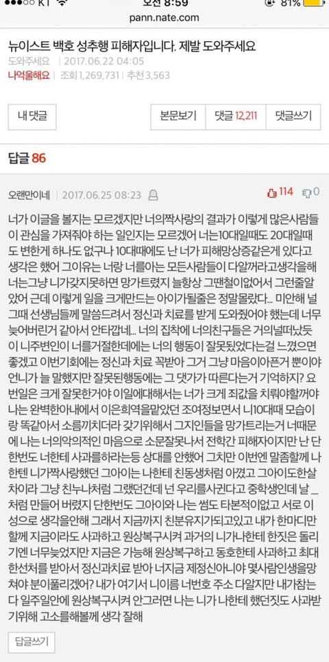 와 에바다 진심 만약 강동호가 피해잔거면 진짜 강동호 이미지 깎인거 어떡하냐 아직 욕은 못하겠는데 마음속으로 욕이 먼저 앞선다.