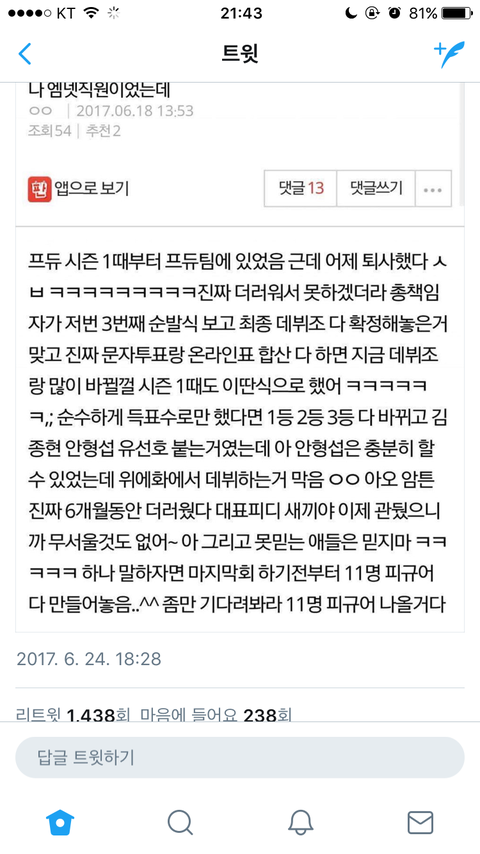 리트윗 수 봐 ㅅㅂㅋㅋㅋㅋㅋ 진짜 개한심하다