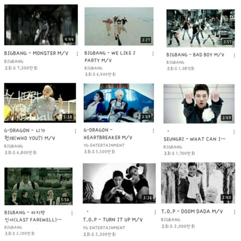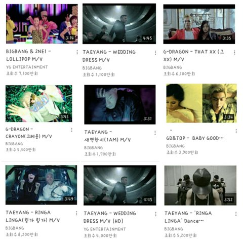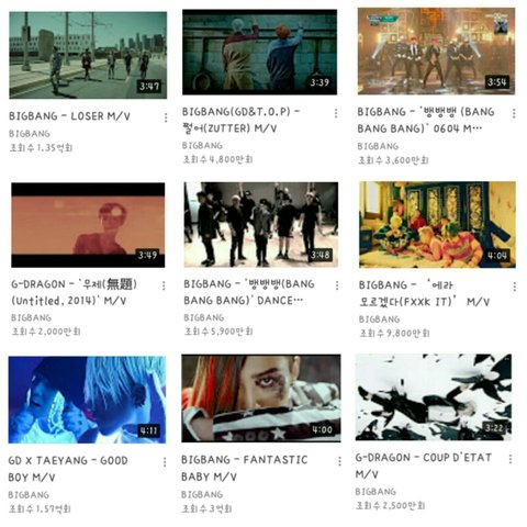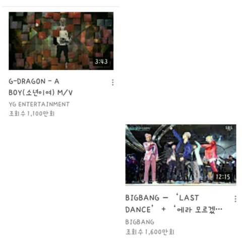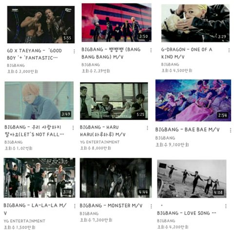 엔터톡에 한번 올렸다가 여기도 한번 올려ㅎ 검색에 빅뱅 유튜브 조회수 모음이라고 치면 나올거임 가서 추천좀 눌러죠♡ 아무튼 좀 쩔지 않냐ㄷ 내가수지만 무서움