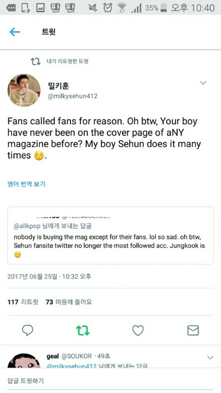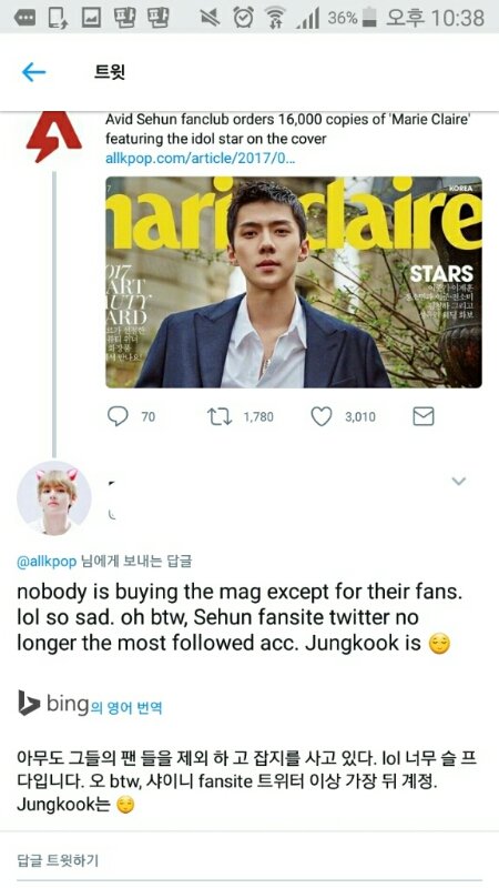 ㅂㅅ이 팬들만 잡지산다고하니까 밀11키훈이 니 가수는 표지 못해봐서 그러냐고 세훈이는 여러번해봤다고 그럼