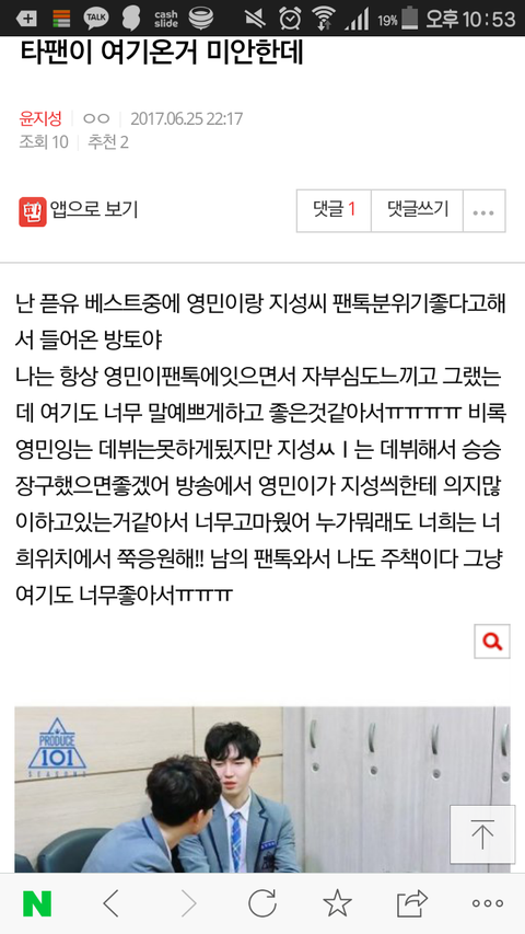 지성이 팬톡에 이런글써주신거 너무 감사해서 고맙다는말하고싶었어요 영민이팬분들 다 너무 착하시고 지성이 좋게생각해주시는거 같아서 항상감사했어요 제 차애 영민이였어요 ㅜㅠ 영민이랑 지성이 캐미 더보고싶었는데 너무아쉽네요 영민이 꼭 데뷔해서 보고싶습니다