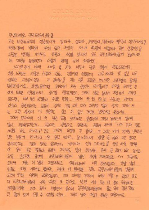 영민이가 한 자 한 자 예쁘게 쓴 편지 보면서 또 울었고 웃었고 동네방네 내 연습생이라고 내 연예인이라고 철부지 아들 사랑 엄마처럼 자랑하고 다녔고