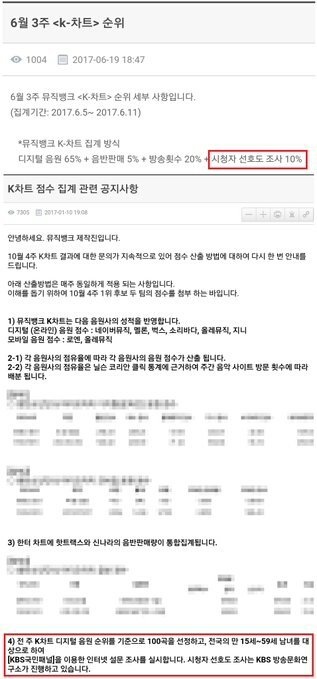 퉥플이 올렸던데 음악은행 점수 10퍼센트 들어가는거임 가입기한 같은건 없는데 미리 가입해놓으셈 공지에 있는 뮤직중심 시청자위원회 신청도 꼭하고ㅇㅇ https://msurvey.kbs.co.kr/