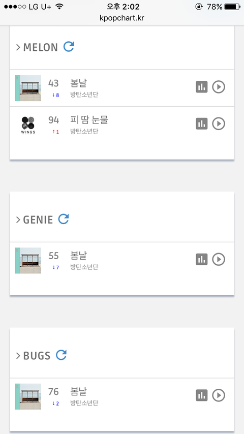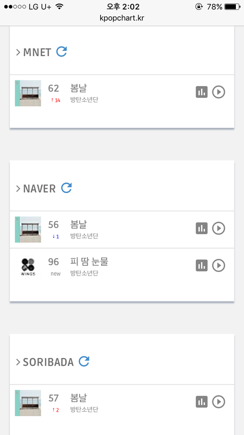 실시간 음원차트 [14시]
