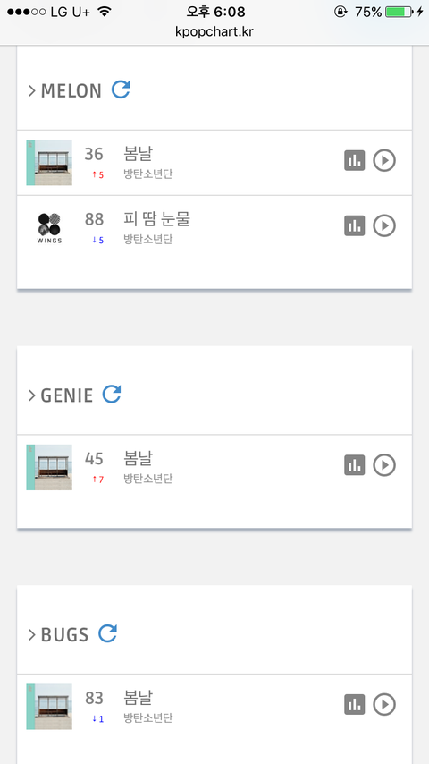 실시간 음원차트 [18시]