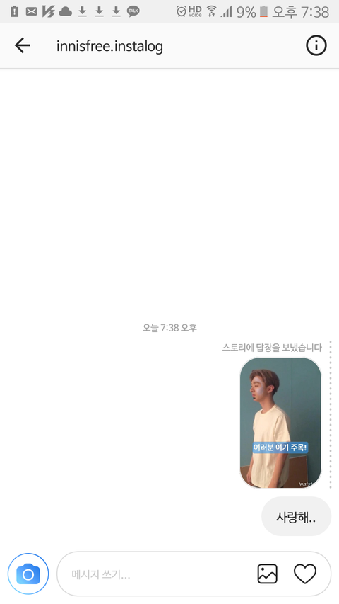 몇번 돌려보는데 나도 모르게 이렇게 보냄ㅋㅋㅋㅋㅋㅋㅋㅋㅋㅋㅋㅋ스토리에서 메세지 쓰기 있잖슴ㅋㅋㅋㅌㅋㅋㅋㅌㅋㅌㅋㅋ