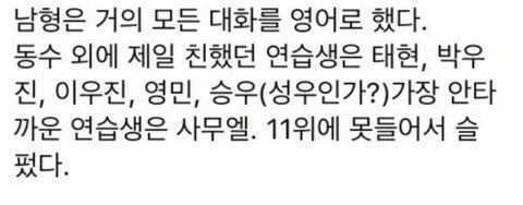 김12남형 연습생이 친한 연습생으로 영민이도 언급했당 영민이 은근 친한 연습생 많았던거 같아 ㅠㅠ