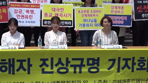 '납치 감금 개종 강요해 돈벌이하는 개종 목사 규탄' 기자회견 을 열었답니다.