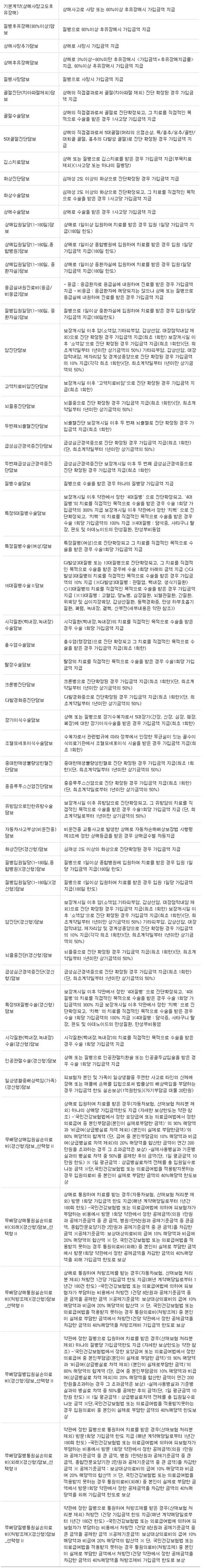 밑에는 보장내용 과 담보내용 입니다.