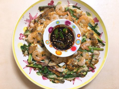 부끄 반가운 비가 내렸을때 급으로 해물파전 아니다 해물부추전 만들었어요ㅎ