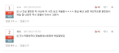 팬질 너무 예의없게 하는거 아냐?? 워너원 다 같이 광고 찍은거 황민현 혼자만 달랑 올린건 그렇다 쳐도 댓글에 다른 멤버랑 비교질까지 하고 그거 추천막 찍고 그러지마...
