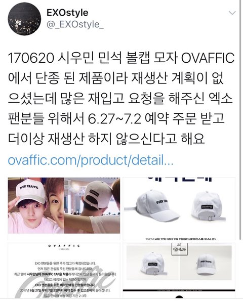단종된 모자도 기간 한정이지만 다시 살려놓은 시우민 클라스ㄷㄷ해