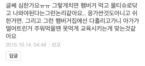 진짜 갖가지 종류의 맘충이 있습니다 카페에서 빵 파는데 파리바게트에서 빵사고 김밥사와서 먹이길래 "저희도 빵 팔고있어서 외부음식은 반입 금지세요~"했더니 애들이 저런걸 어떻게먹어요?!!!!!! 하는 손님 (이분은 전적이 많으십니다... 아주 블랙리스트였어요)