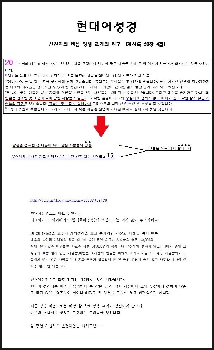 본 게시 글은 자신들의 핵심 교리가 엉터리임을 알고 있는 신천지가
