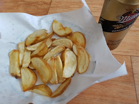 기름종이에 놓고 키친타올로 살살 눌러주고 맛소금 뿌려 섞어주고 먹기