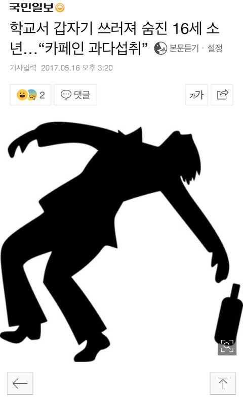 진짜 커피 조심해서 마셔야 돼 커피 먹고 조금이라도 배 아프거나 머리 아프거나 하면 먹지 말거나 진짜 조금만 마셔 진짜 내가 오늘 밤새워야겠는 일 없으면 커피 먹지 말자 ㅠㅠ 커피 진짜 위험해 ㅠㅠ 미국에서는 청소년 카페인 권장량이 100 mg 이하야 근데 우리 커피 하나만 사서 마셔도 100mg 훌쩍 넘어... 너무 피곤하면 하나 사서 마시고 그래 시험기간에 쌓아 놓고 마시다가 진짜 훅 가...