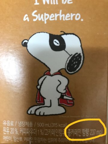 +) 댓글 중에 초콜릿이랑 콜라에 커피보다 더 많은 카페인이 함유되어 있다는 댓글 봤는데 믹스 커피 한 개만 해도 평균적으로 카페인 함량 60~80mg이야 스누피는 230mg 넘구 절대 조금 들어있는 편 아니야 하루에 믹스커피 두 잔 이상 먹는 애들 조금씩 줄였으면 좋겠어