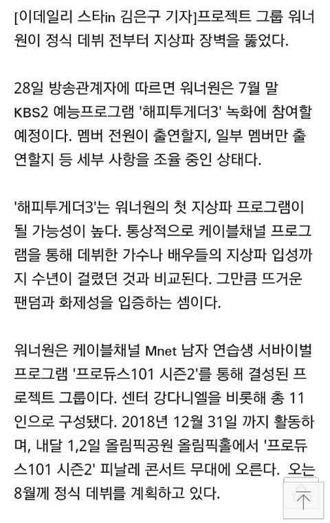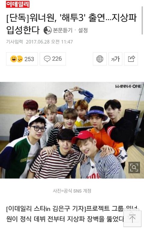 워너원 해투 기사 원문