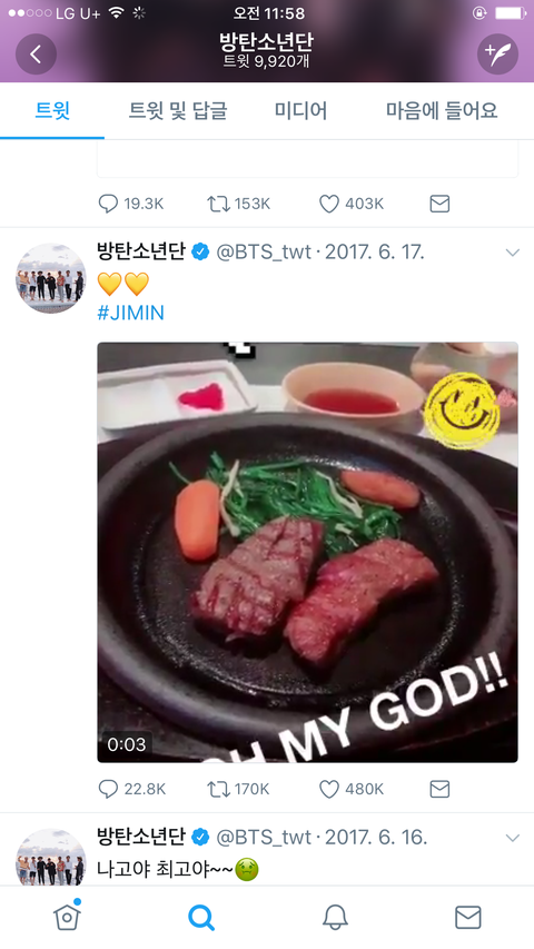 오늘 셔츠도 그렇고 저번에 노란 니트도 그렇곸ㅋㅋㅋㅋ 짹에 노란 하트 쓰는 거 본적없는 것 같은데 요새 노란 하트도 쓰곸ㅋㅋㅋㅋㅋㅋ 노란색 좋아졌나봐