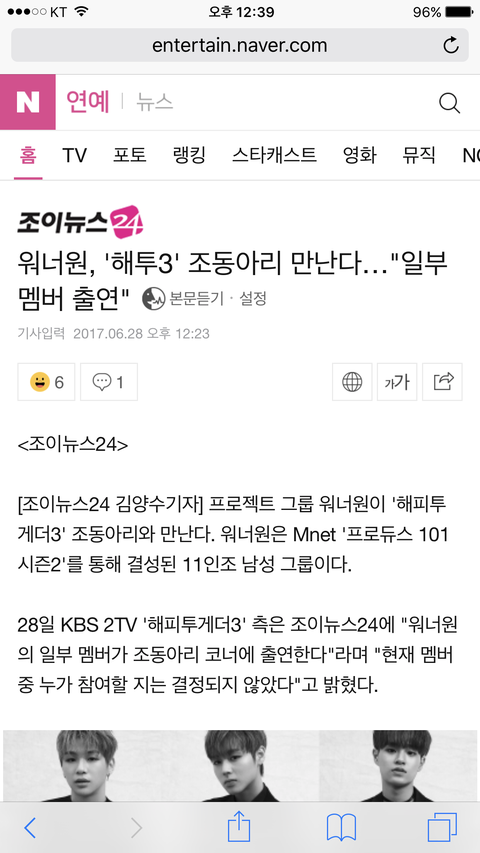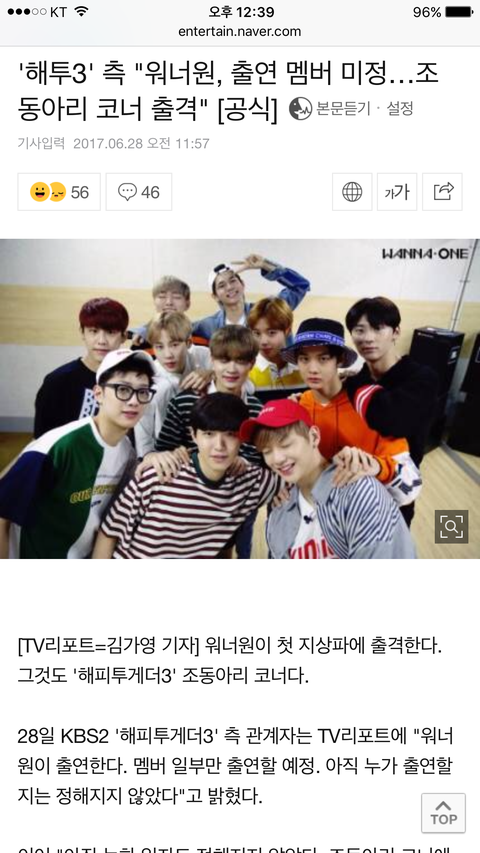 예능잘할거같은 멤버로 나갈듯 옹성우라던가..