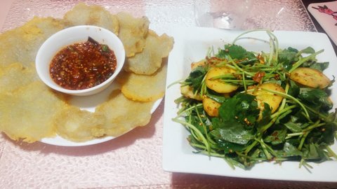 참나물무침과 감자전