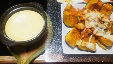 달걀찜과 문어볶음을 호박안에 넣어 구워봤어요