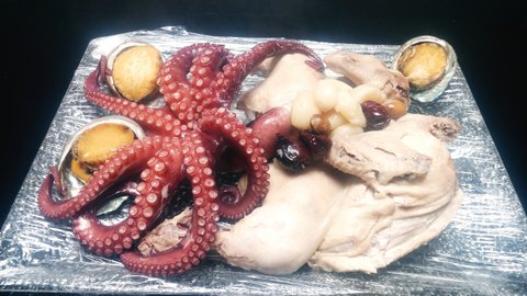 닭 하나 삶더라도 뼈 안에 붉은색까지 삭삭 긁어서 깔끔하니 손질하고 푹 익은 마늘 소스처럼 먹으니 맛있다 했더니 넉넉히 넣어서 내가 좋아하는 문어 전복까지 몸보신한상
