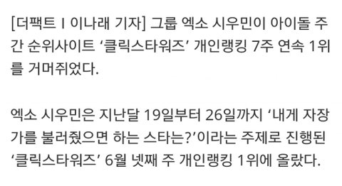 엑소 시우민, 내게 자장가를 불러줬으면 하는 스타 1위 ‘음색 깡패’