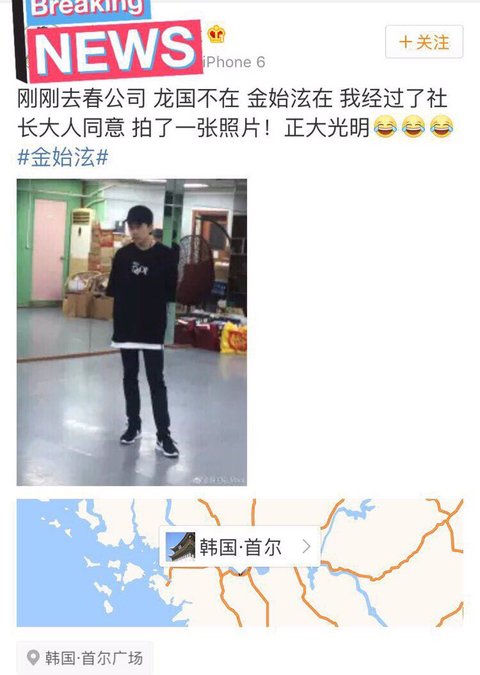 해석해보면 춘 회사에 갔는데 용국이 없었고 김시현있어서 사장님께 허락받고 사진 한장 찍었다 영광스럽다! 돌았냐 춘...;
