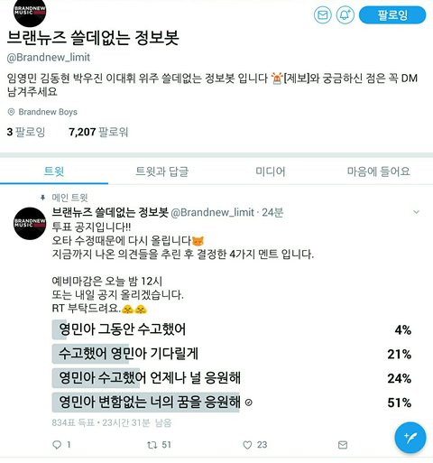 방토들!!틧에서 낼 ㅂㅇㅇ 하는데 영민이 댓글 총공한다고하는딩