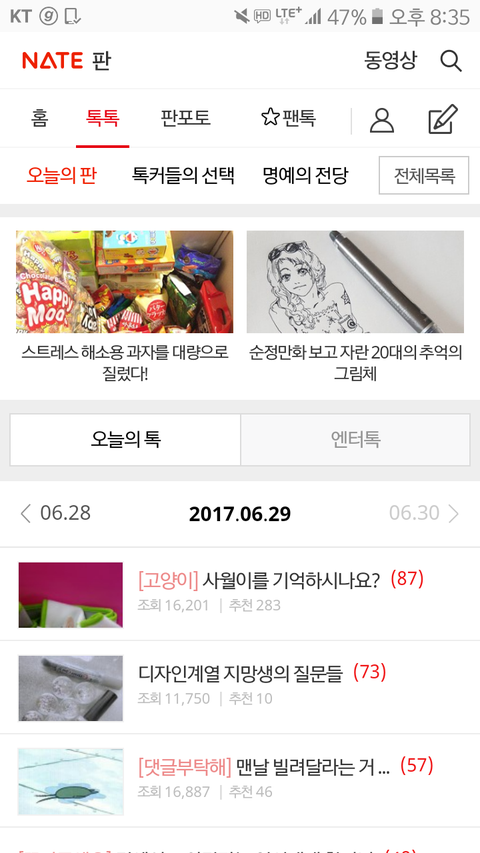 판 들어왔는데 톡선이야 ㅎㅅㅎ기분좋당