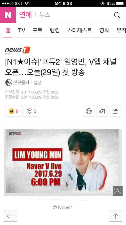 방토들 영민이 슈스다 슈스!!! 네이*에 오늘 녕민이 브이앱 한다고 기사 났으니까 좋은 댓글 좋아요 마구마구 눌리러 가댱ㅎㅎㅎ