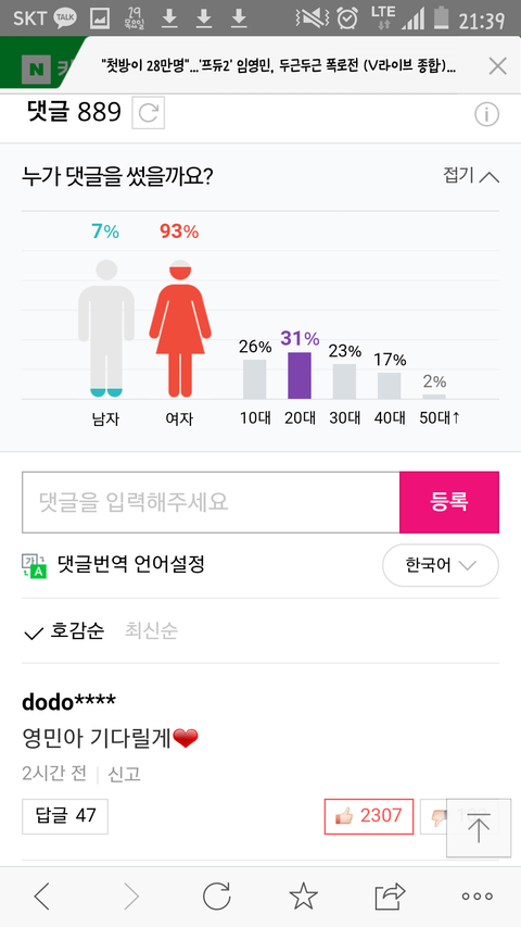 30대팬이많았는데 20대가 늘었다