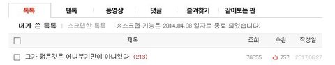 6/28일날 학교 갔다와서 무심코 판켰는데 제 글이 톡선에 올라간거 보고 깜짝 놀랐습니다