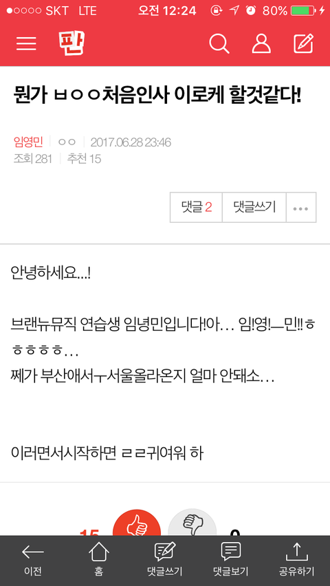 이글 올린 방토 칭찬해 ㅋㅋㅋㅋ