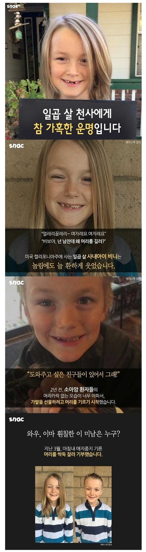놀림을 당하면서도 2년동안 머리를 길러 기부한 아이.jpg