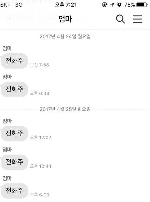 엄마의 카톡 연락이 오면