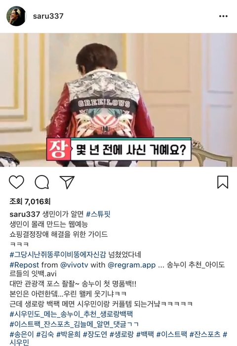 송은이님 인스타에 시우민 이름 봄? ㅋㅋ